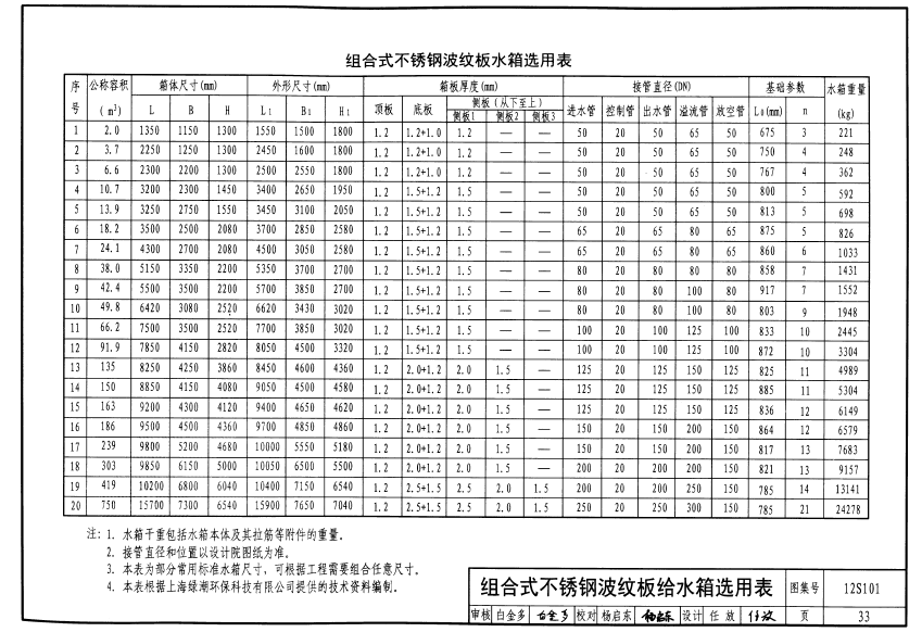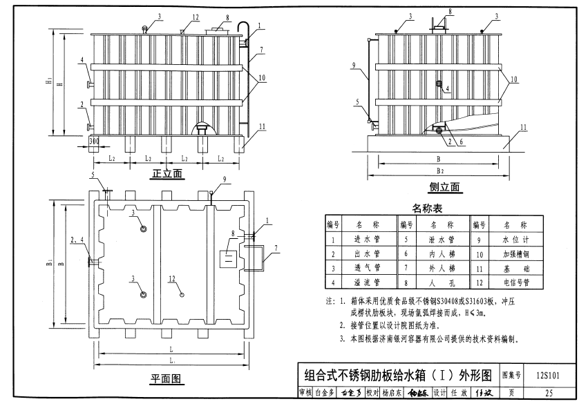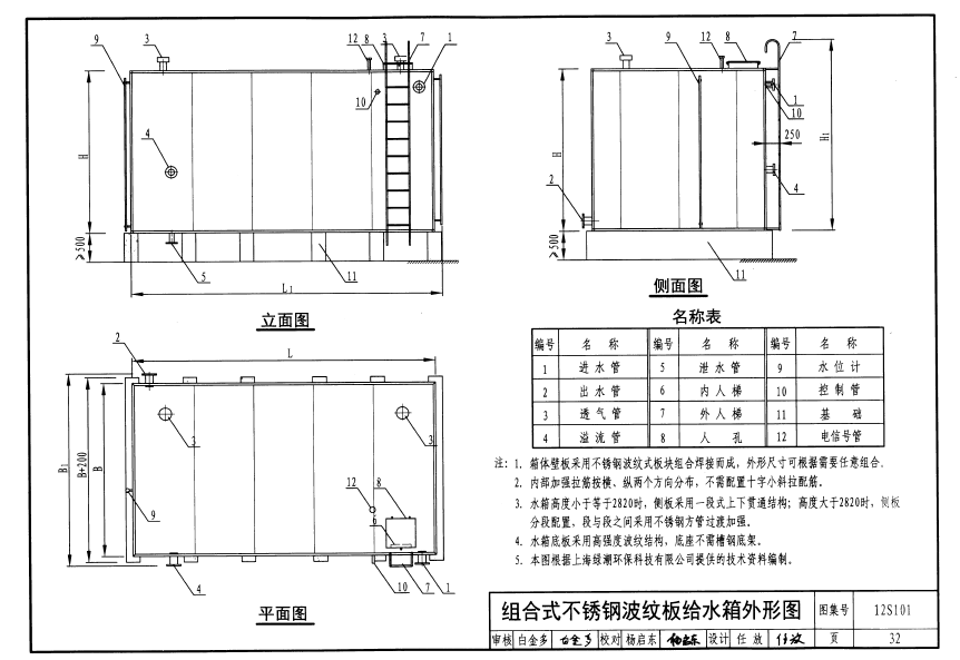 點擊下載:不銹鋼水箱圖集 12S101 PDF格式