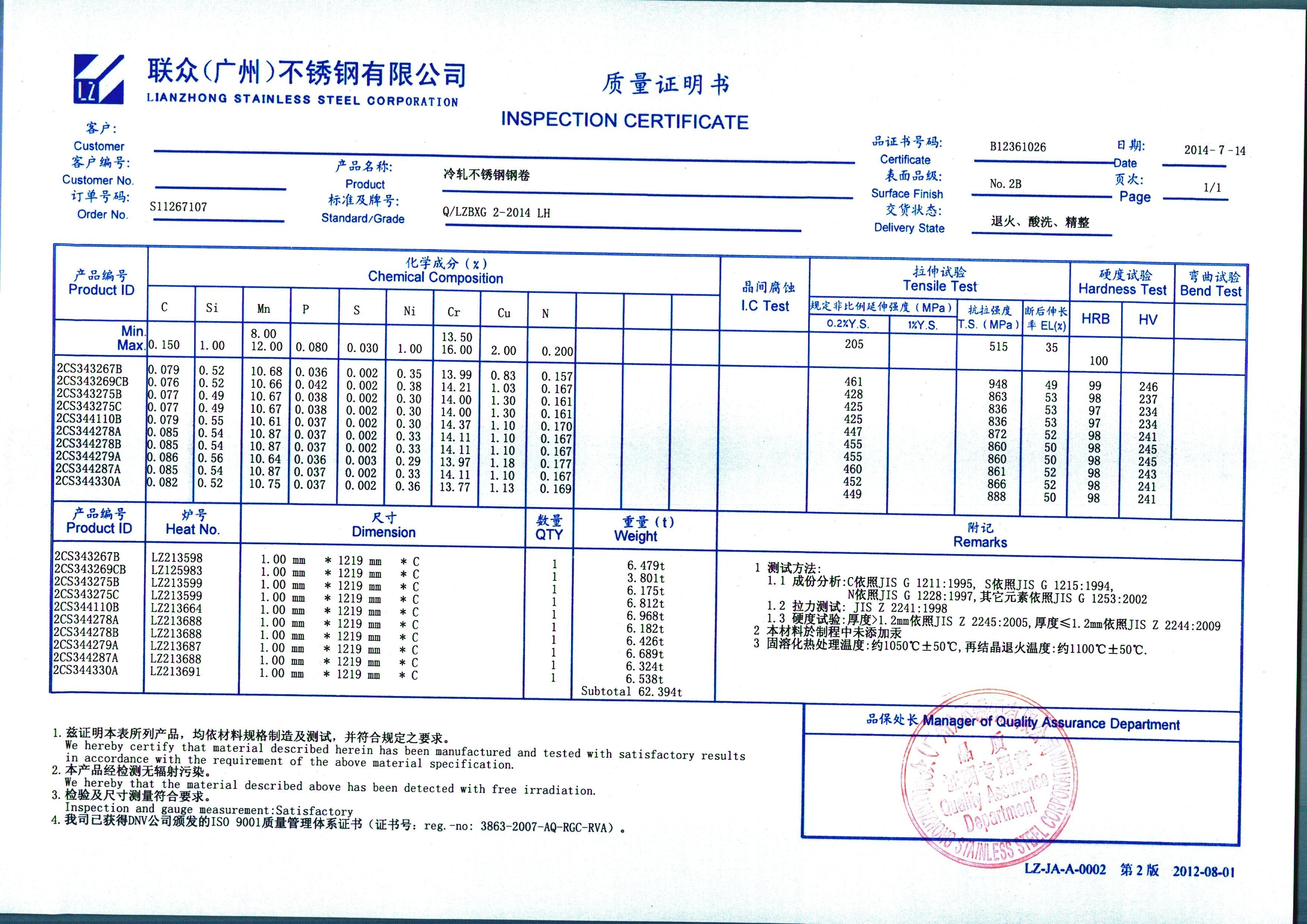 不銹鋼水箱材質(zhì)質(zhì)量報(bào)告