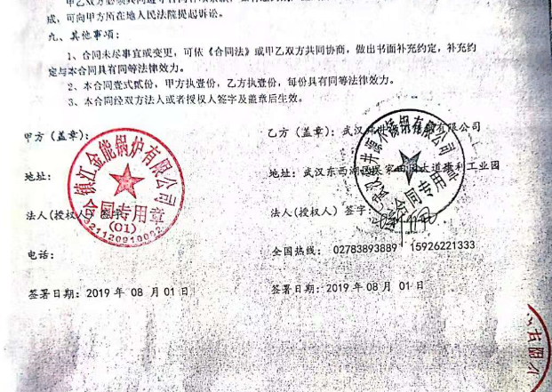 2019年8月1日與鎮(zhèn)江金能鍋爐簽定二臺16噸荊州不銹鋼保溫水箱,按約定期限完工,客戶要求該不銹鋼保溫水箱是以304-2B不銹鋼板材、201不銹鋼板等為表層,閉孔阻燃自熄型聚苯乙烯料板或聚氨酯等為芯層,通過焊接化組合,使內(nèi)外層共同達(dá)到佳保溫效果,該水箱具有外形美觀,機(jī)械強(qiáng)度高,性能優(yōu)良,組裝方便等優(yōu)特點(diǎn)。常溫下24小時(shí)內(nèi)降溫在10度以內(nèi)。安裝完畢后第二天就驗(yàn)收完畢,客戶說給我們不銹鋼水箱廠家加分好評!下圖附保溫水箱合同及實(shí)物圖:
